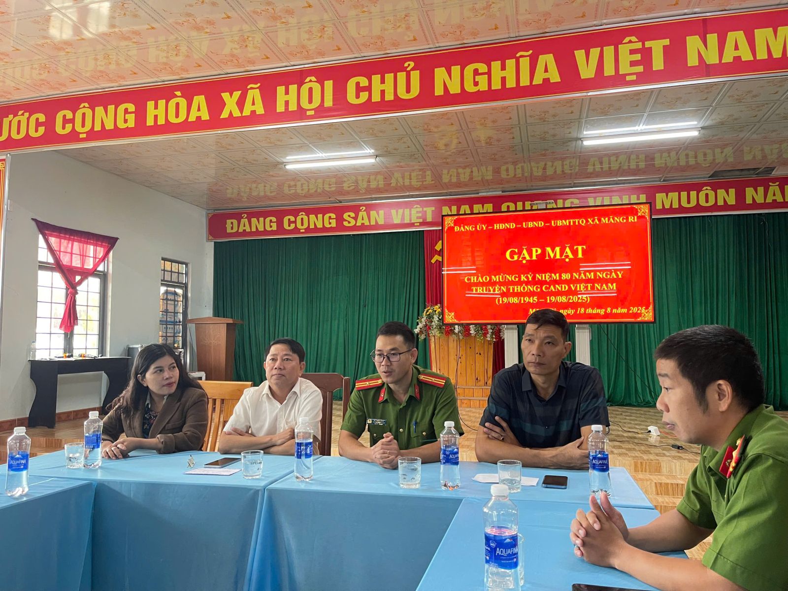 Đoàn công tác của Thường trực Đảng ủy, HĐND và UBND xã thăm hỏi và động viên cán bộ, chiến sỹ Công an xã Măng Ri nhân ngày Truyền thống của ngành (Ngày 19 tháng 8)