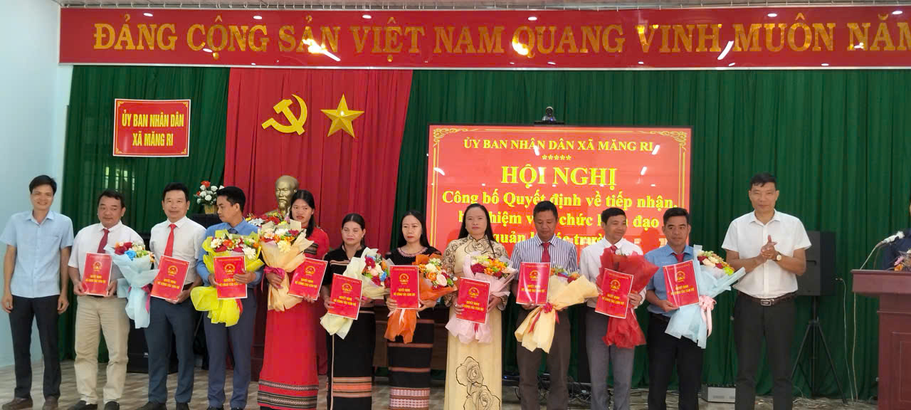 Sáng ngày 20/08/2025, tại Hội trường UBND xã Măng Ri diễn ra Hội nghị Công bố các Quyết định và tiếp nhận, bổ nhiệm viên chức lãnh đạo, quản lý các trường học trên địa bàn xã