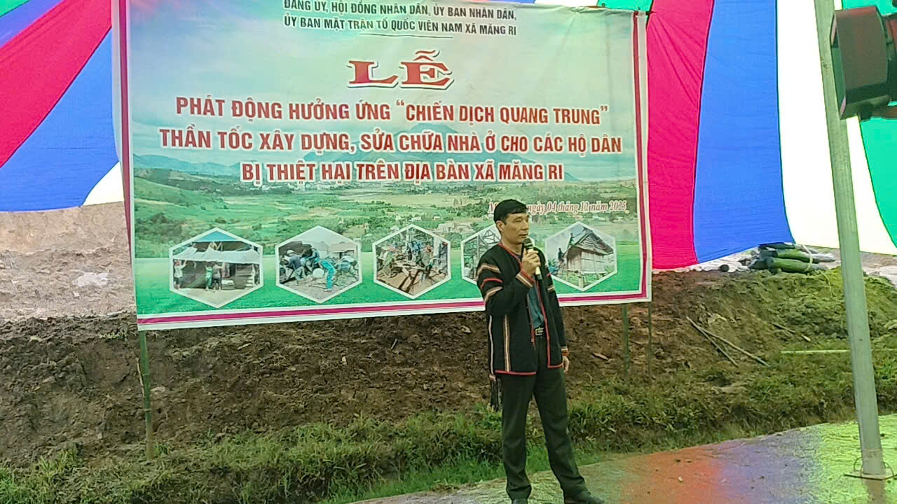 Phát biểu khai mạc buổi lễ, đồng chí Phạm Xuân Quang – Chủ tịch UBND xã nhấn mạnh:“Chiến dịch Quang Trung” là mệnh lệnh hành động khẩn trương của Chính phủ nhằm huy động tổng lực cả hệ thống chính trị, các tổ chức, doanh nghiệp và cộng đồng cùng chung tay hỗ trợ Nhân dân vùng thiên tai. Đối với xã Măng Ri, đây là thời điểm hết sức quan trọng nhằm thần tốc xây dựng, sửa chữa nhà cửa cho các hộ dân bị thiệt hại nặng trong đợt thiên tai vừa qua.