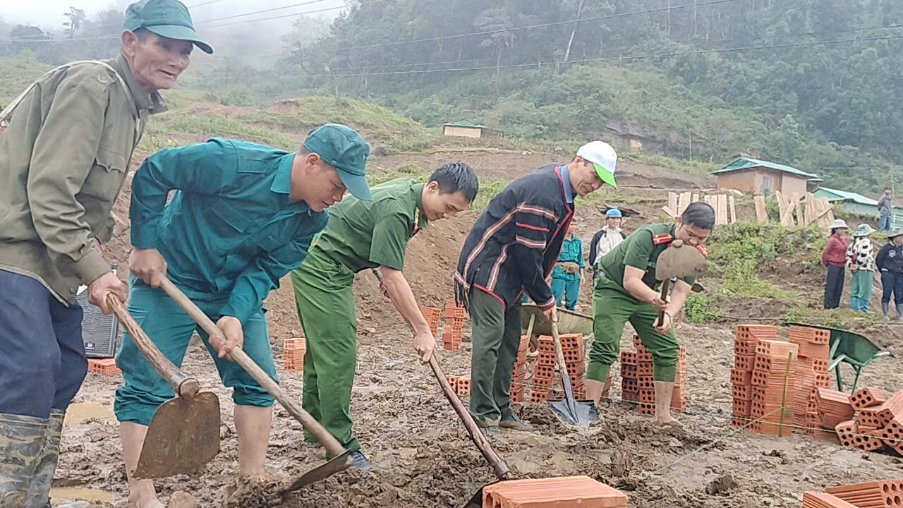 Tại buổi lễ, lực lượng Công an xã và Ban Chỉ huy Quân sự xã được phân công hỗ trợ bà con vận chuyển vật liệu, đào móng, đắp nền, dựng khung nhà.