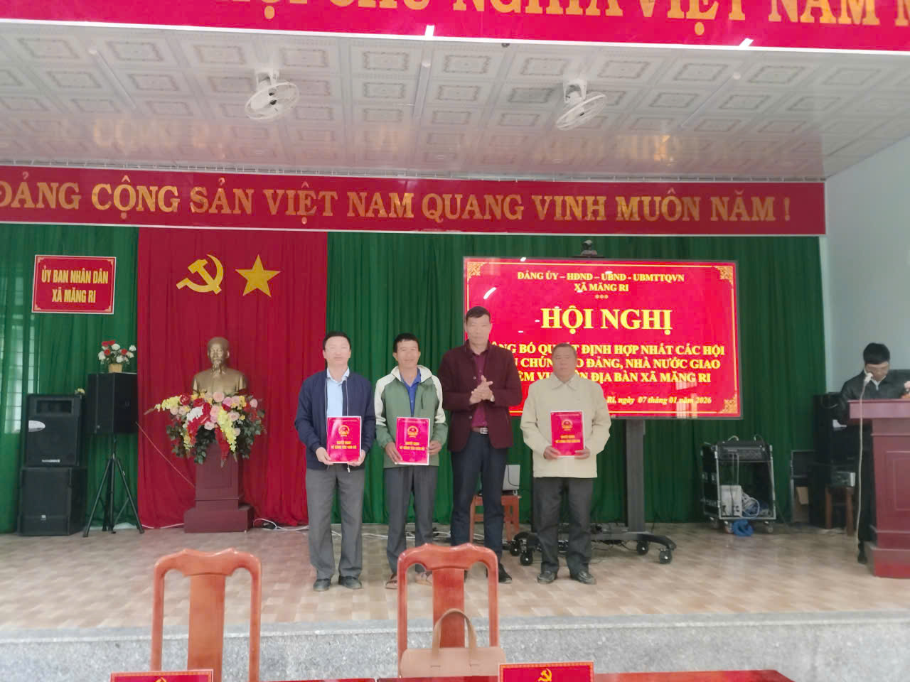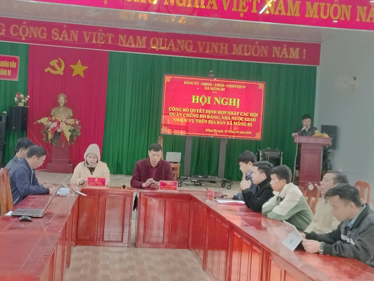 XÃ MĂNG RI TỔ CHỨC HỘI NGHỊ CÔNG BỐ QUYẾT ĐỊNH HỢP NHẤT CÁC HỘI QUẦN CHÚNG DO ĐẢNG, NHÀ NƯỚC GIAO NHIỆM VỤ TRÊN ĐỊA BÀN XÃ